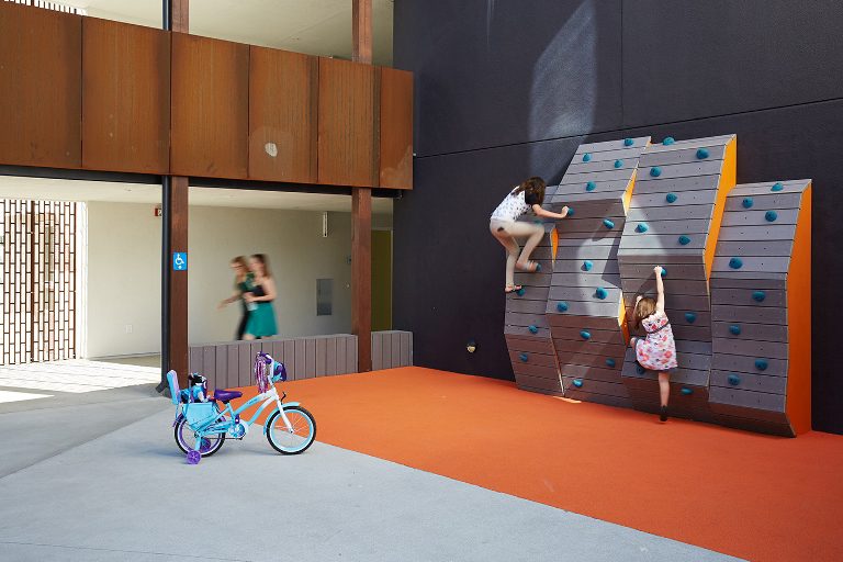 Designed for senior living, this five-building complex is connected with open-air breezeways and features a community garden, monument signage, and a waste chute system. A blend of form and function, this project supports independent living while promoting social engagement.