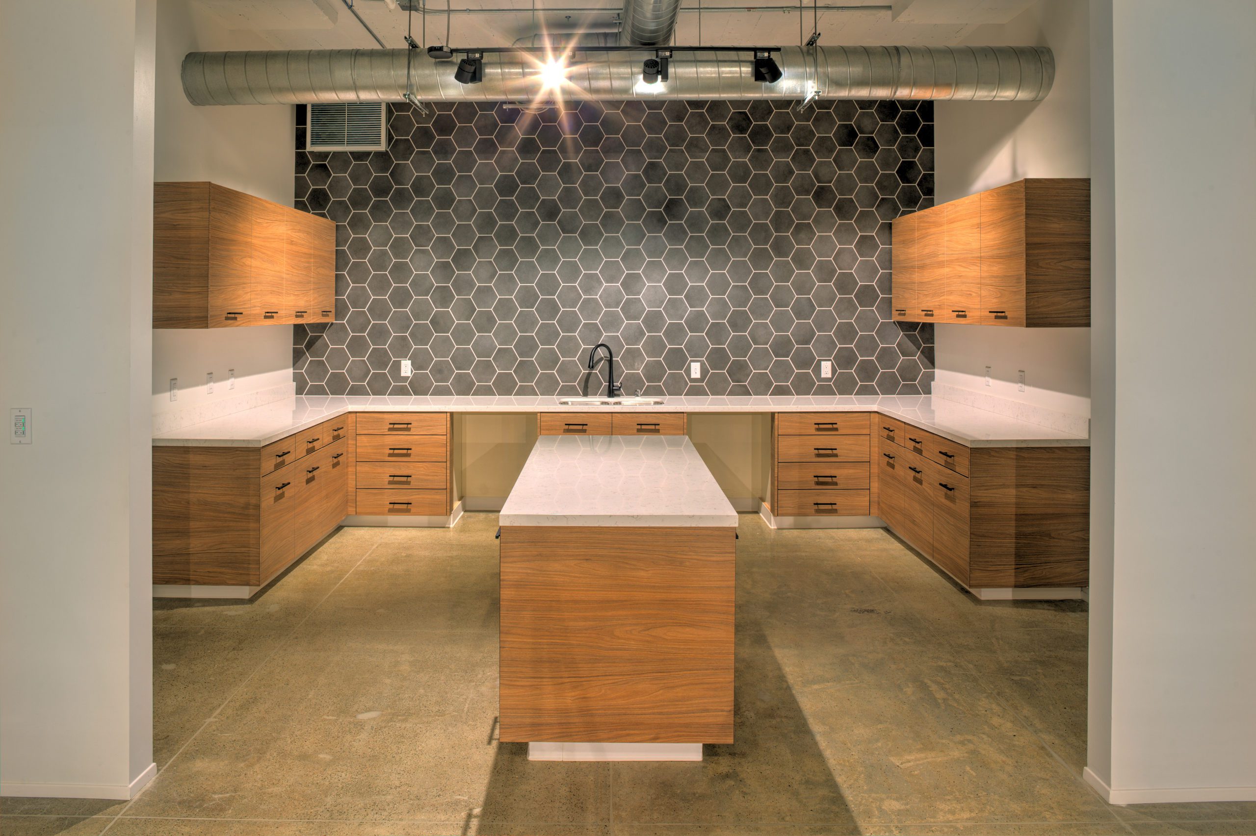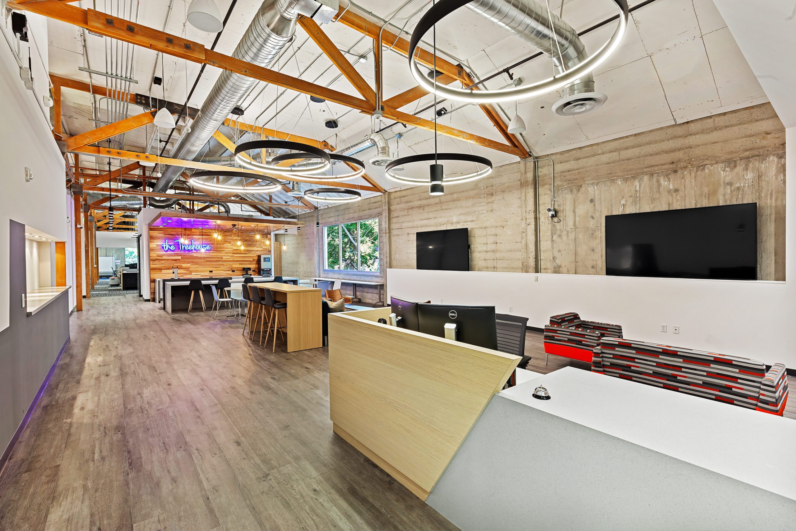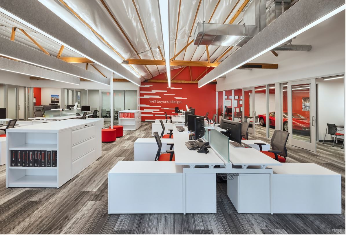 For this nationally recognized design firm, we delivered a clean, modern workspace with an emphasis on transparency, daylighting, and collaboration. Features included exposed ceilings, polished concrete floors, and an integrated AV system for remote coordination across their national office network.